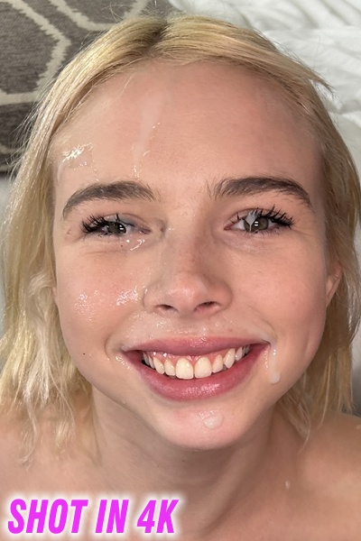 Ellie is a cute and cuddly free spirited girl with and innocent giggle at the site of a hard cock. She is met with Chad on the bed where he waists no time guiding her mouth to his shaft. After several minutes of solid sucking, she hops on for a solid fuck ride until her smiling face is glazed with thick white cum.